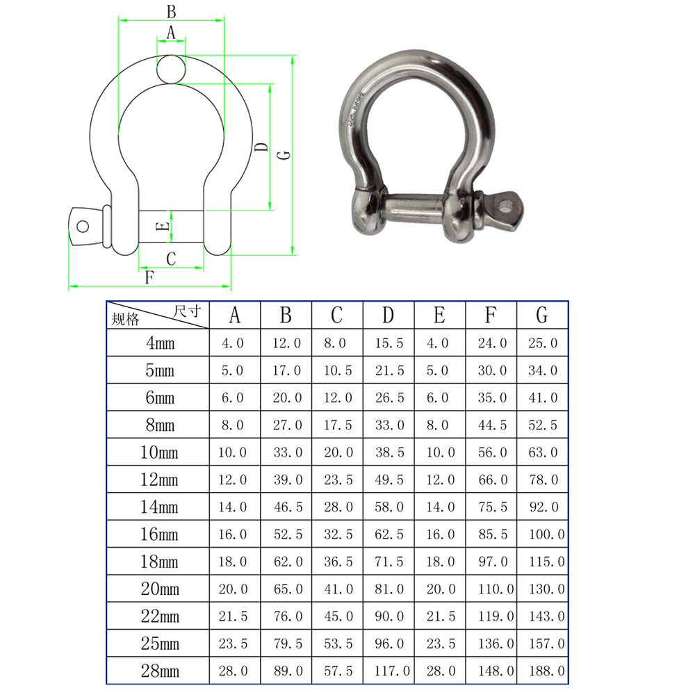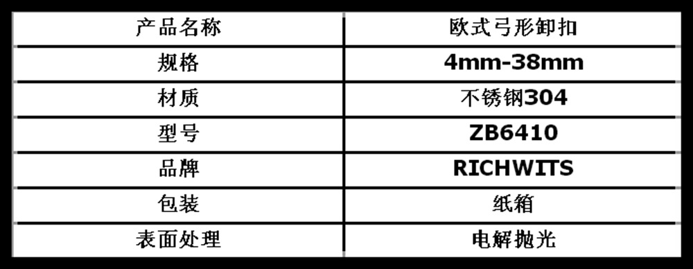 RICHWITS 不锈钢304 欧式弓形卸扣 d扣 马蹄形卸扣5mm