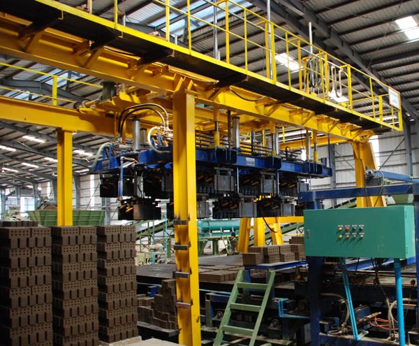 ZMPI型自动码坯机主要适用于一次码烧隧道窑中的砖坯自动码放,本机采用较先进的PLC集中控制。行走旋转采用变频控制,升降、分坯采用液压控制,具有高效节能,维护简单,成本低廉,运行可靠等特点,全自动码坯系统代表着目前国际先进水平。